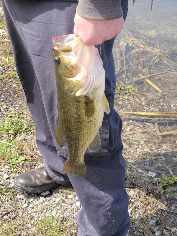 Largemouth BassTechniqueDrop ShotSeasonSpring (Pre-Spawn)StructureSubmerged VegetationIt was a cool and calm day with bluebird skies in the afternoon. I saw a lot of movement on the water, but it seemed like they didn't want to bite anything. So, I used some finesse and tied on a drop shot with a Zoom finesse worm and worked the edges of some submerged grass until I finally got a bite.
