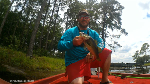 Largemouth BassTechniqueFrogs/ToadsSeasonWinterStructureLily PadsFROGGING - Water temperatures are now 70 degrees at Lake Juniper. For those unaware, Lake Juniper is a big fish factory. The lake has all the ingredients for high-quality big fish - hydrilla, milfoil, lily pads, standing timber, etc. With this type of cover and the high probability of catching a "biggun", a frog is a perfect choice 👌. Today was no different. The strikes were vicious and even touching the point of damaging the frog itself. My personal choice is the RIVER2SEA Phat Mat Frog in the SNIPE color (black). This brand of frog is much bulkier than others and has an incredible ability to attract bigger fish. In essence, the a hollow body frog is an excellent lure for this lake. The retrieve was fast, with all strikes occurring when the frog was moving.
