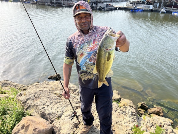 Largemouth BassTechniqueBladed JigsSeasonFallStructureRip RapFish were feeding on threadfin up shallow on the riprap and a few good fish were loaded up in the back of the coves.