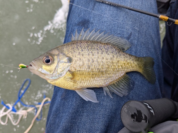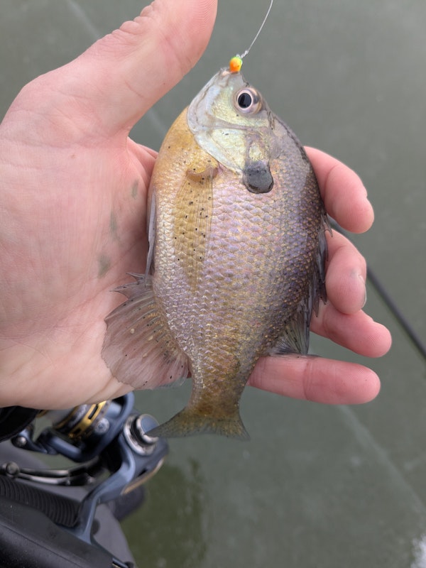 Panfish / BluegillTechniqueVertical Jigging Mid Depth (10-19')SeasonIceStructureSubmerged VegetationIce fishing with tungsten jig off breaklines over submerged vegetation.