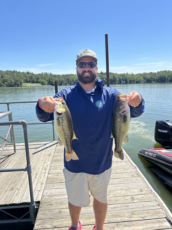 Largemouth BassTechniqueDrop ShotSeasonSummerStructureStanding TimberIt was a tough bite on a HOT day at Lake Belva Deer. The storms from the week dirtied the water and we tried lots of different baits. But I was able to get them biting in the early afternoon on the Twilight colored Trick Shotz from Z-Man on a drop shot. The Vmc octopus hook kept them stuck! Belva Deer has a ton of flooded standing timber and we found them near larger clusters.