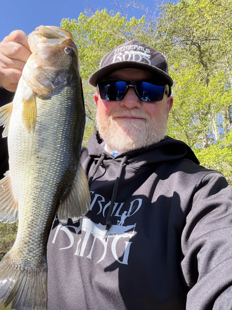 Fished Lake Burnt Mills, water temperature 58 degrees, temperature in low 50’s, Sunny with 2 mile per hour winds. Caught a couple decent Bass on the Z-Man Black and Blue Chatterbait Elite EVO from Omnia Fishing with a Yum Black Blue Shadow 4.25 inch Wooly Bug trailer.
