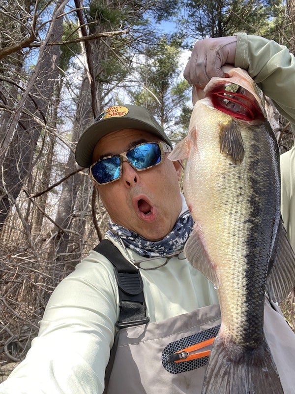 Largemouth BassTechniqueSoft Body Swimbaits (Small/Medium)SeasonSpring (Pre-Spawn)StructureSubmerged VegetationCaught fishing around a flat near an underwater creek channel