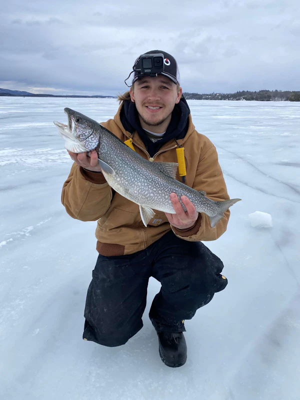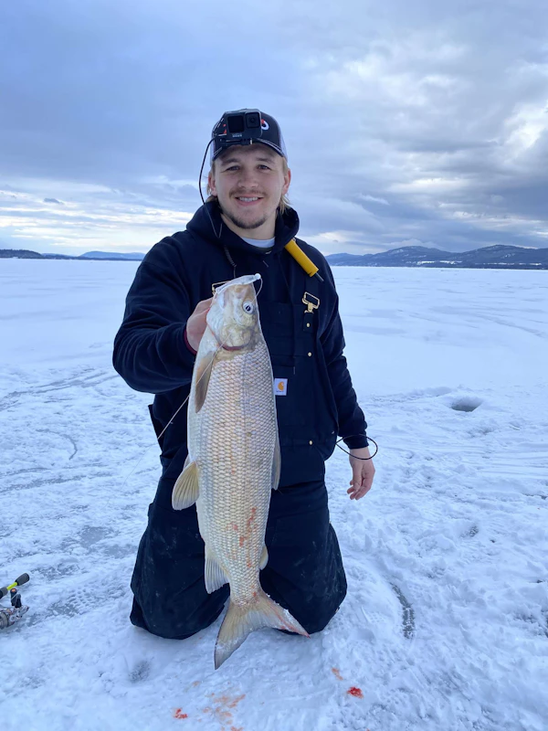 Lake WhitefishTechniqueIce Fishing JigsSeasonSpring (Pre-Spawn)StructureHumpsJigging on humps at lake Champlain. Used a rabid baits 3in fox shot in the color ghost on a small vertical jig head.