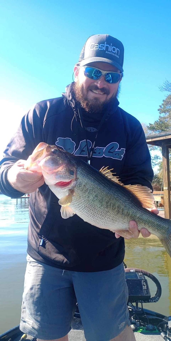 Largemouth BassTechniqueTexas Rigs (Worming)SeasonSpring (Pre-Spawn)StructureDocksFishing just after a Hugh water event (7 plus inches of rain put lake about 3 foot high in a few day). Water was dropping and fish were tight lipped. Fishing was rough. First blue bird day in over week didn't help.
