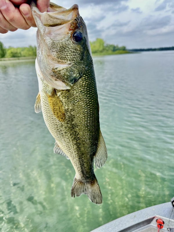 Largemouth BassTechniqueBladed JigsSeasonSpring (Post-Spawn)StructurePointsLots of bass cruising the shallow grass in the NW corner, good quality fish, but the bite’s been slow. Picked this one off with a Jackhammer, casting right to the edge of the cattails in less than a foot of water.