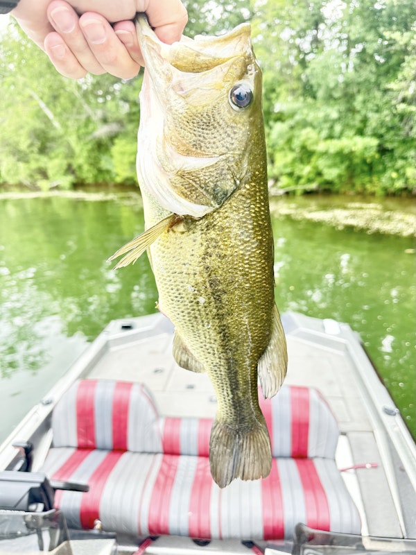 Largemouth BassTechniqueNeko RigsSeasonSummerStructureSubmerged VegetationCaught a decent largemouth early afternoon working a spiral neko rig into scattered grass. Water was stained from yesterday’s rain, with about 2ft of visibility. I let the bait fall on a semi-slack line, and most of the bites came right as it hit bottom or during that first subtle lift. The spiral fall from this rig seemed to trigger a reaction strike from otherwise hesitant fish.