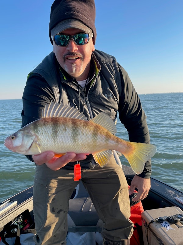 Yellow PerchTechniqueVertical Jigging Deep (20'+)SeasonFallStructureRock PilePerch bite was very light on that day. The sensitivity in the St. Croix PFS70LXF was key in detecting the bite or subtle change in feel of the bait. The perch were keying in on rock piles adjacent to the deepest break line before the mud basin. Used baits on a tandem hand tied double spreader type rig with a heavier main weight on the bottom of the rig being a 3/8 oz bell sinker.
