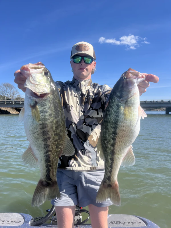 Largemouth BassTechniqueFootball JigsSeasonSpring (Spawn)StructureLaydownsFish are moving into spawn coming into the full moon on Hartwell. Cooler temps have some them held back a touch, but the fish are close.