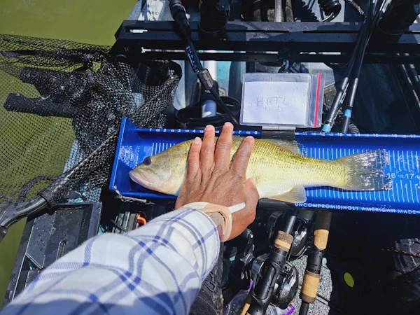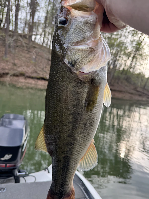 Largemouth BassTechniqueNeko RigsSeasonSpring (Post-Spawn)StructureDocksFished points early for spotted bass with a #5 shadrap in Caribbean shad. Once sun was high moved to docks and laydowns for largemouth bite. Fish had spawned only caught bucks saw lots of small fry up shallow mid lake.
