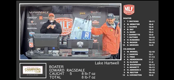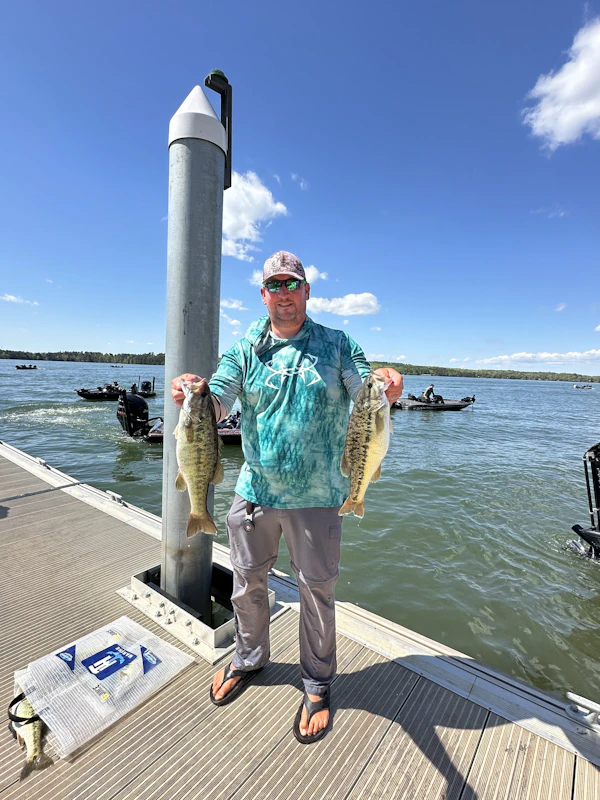 Largemouth BassTechniqueFootball JigsSeasonSpring (Spawn)StructureLaydownsFish are moving into spawn coming into the full moon on Hartwell. Cooler temps have some them held back a touch, but the fish are close.