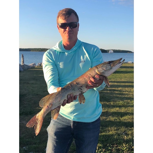 Northern PikeTechniqueSpinnerbaitsSeasonSummerStructurePointsFishing for smallies in a bay with some scattered rocks in about 20’ of water. This pike smoked it.