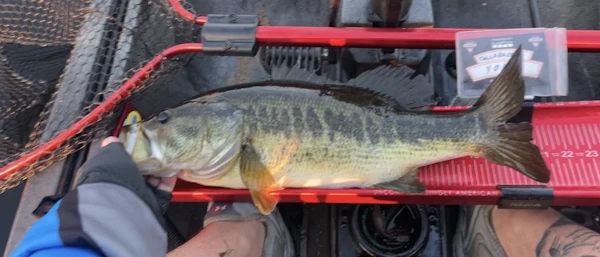 Largemouth BassTechniqueTexas Rigs (Pitch/Flip)SeasonSpring (Post-Spawn)StructureLily PadsCaught 5 in the first hour on a shad spawn at the edge of the Lilly pads. Added a few more throughout the day on the same pattern without the shad spawn. Biggest was 21.50” and approx 5.5 lbs. 90.50” for my best 5 in the kayak tournament