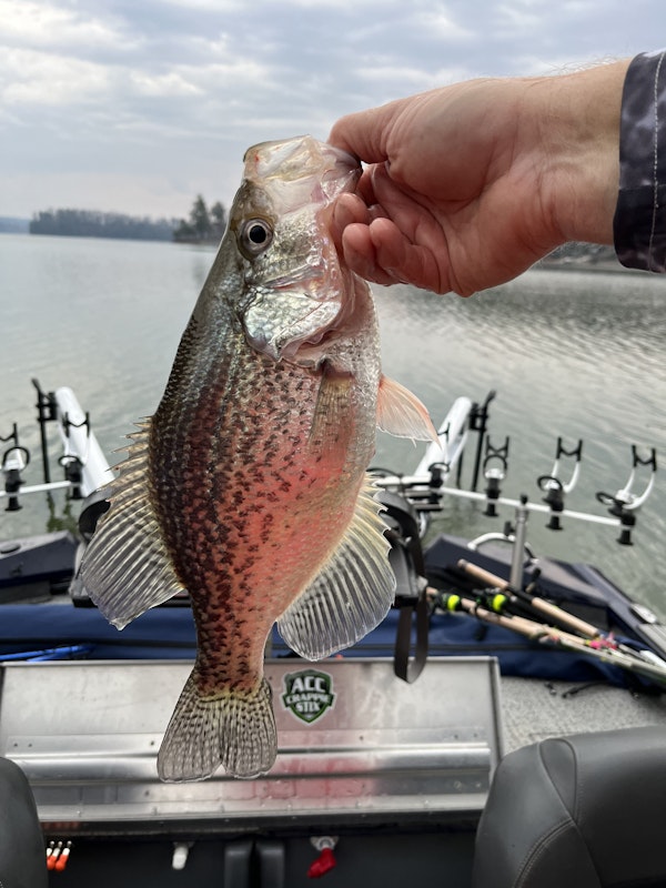 CrappieTechniqueVertical Jigging Mid Depth (10-19')SeasonSpring (Pre-Spawn)StructureBrush PilesJust after daybreak seemed to be the ticket. Stormy day, Clouds and rain. Most were suspended at around 15-20’ deep. close to cover as a brush pile, dock, or ledge. Spawn is very soon.