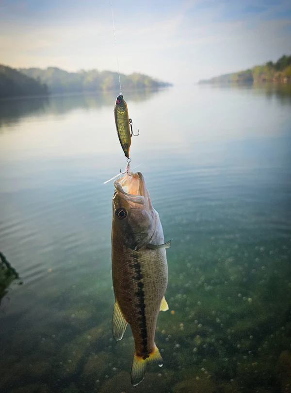 Spotted BassTechniqueHard Topwater (Prop)SeasonSpring (Spawn)StructureRip RapThrowing slow topwater early in the day, quiet, no boat traffic.