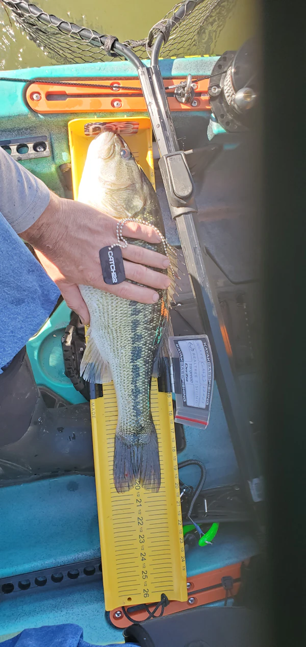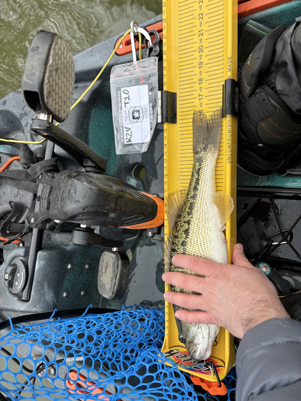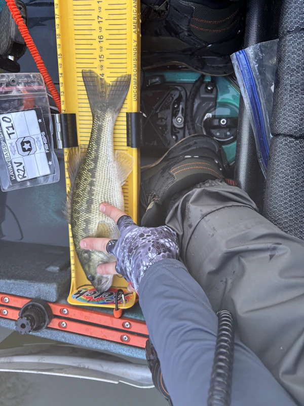Spotted BassTechniqueDamiki RigSeasonSpring (Pre-Spawn)StructurePointsEating really good on the edge of the ditches on points.