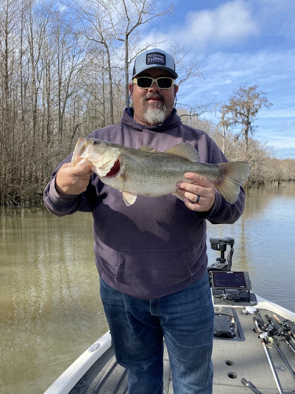 Largemouth BassTechniqueTexas Rigs (Worming)SeasonWinterStructureStumpsPacks landing backwaters from river. Bite was slow but caught 2 over 4 lbs sitting in deeper water around 8-12 feet casting to 2-3 feet cypress tree edges.