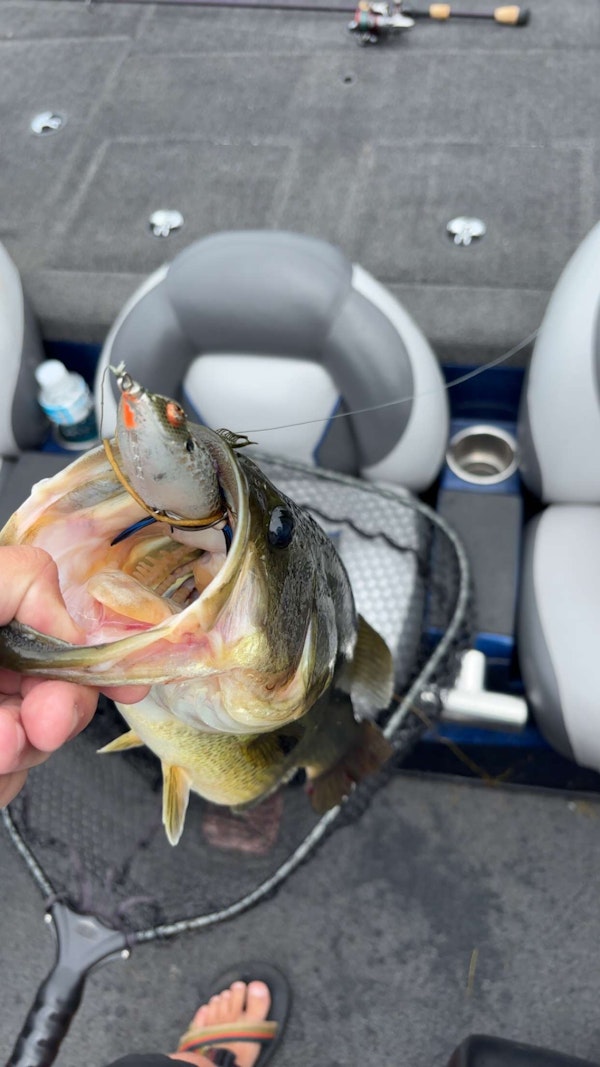Largemouth BassTechniqueUnderspinsSeasonSpring (Pre-Spawn)StructureSubmerged VegetationFound some pre spawn largies today in offshore grass. I was using the 3.3 keitech with the northland underspin to make my bait stand out in the wind.
