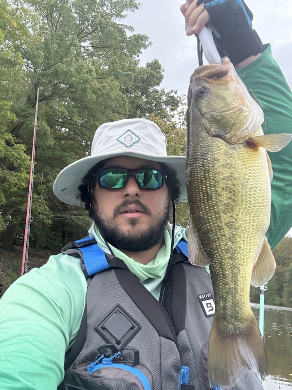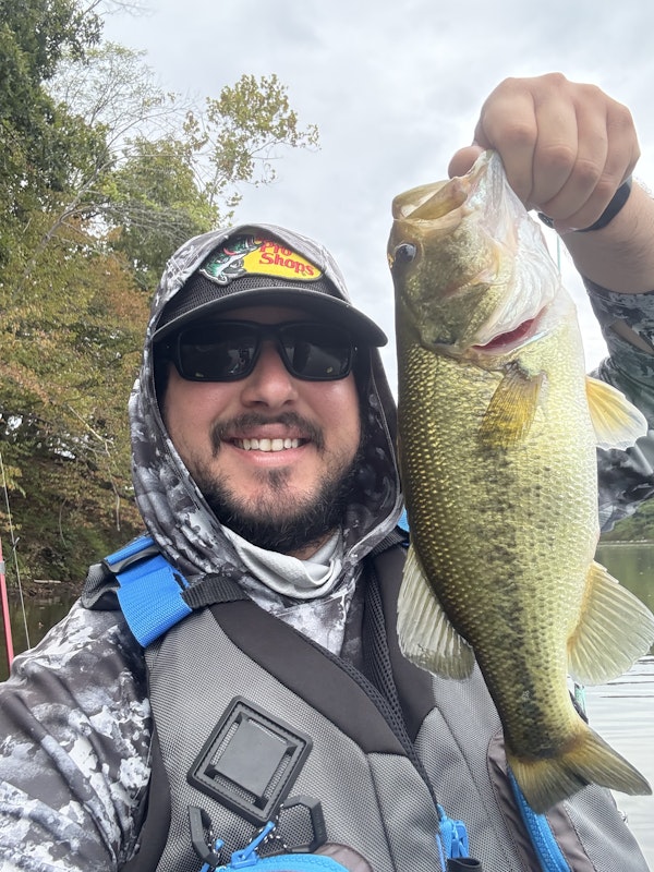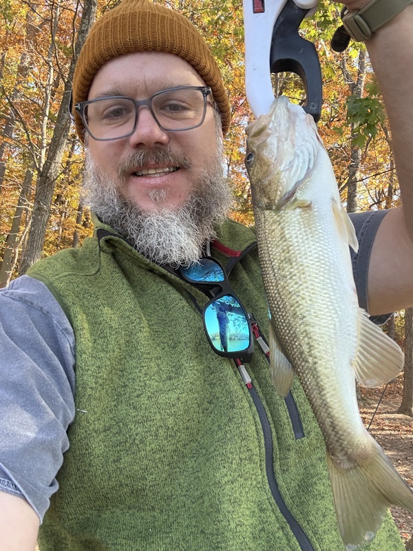 Largemouth BassTechniqueSpinnerbaitsSeasonFallStructureFlooded Brush17” inch (2.5 lb) largemouth bass caught on one of the points on the lake, slow retrieve through some flooded brush.