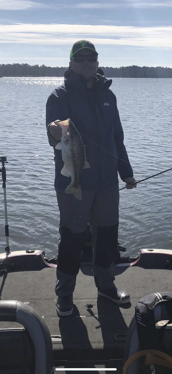 Largemouth BassTechniqueNed RigsSeasonSpring (Pre-Spawn)StructureRock PileI went out on the lake on 02/18/22 to practice for a collegiate tournament with my tournament partner. The weather started off cold in the morning with outside air temperatures in the low 30's and then warming up to the low 50's later in the day. There was almost no wind at all, and it was bright and sunny all day. The water temperature throughout the day ranged from 48 to 54 degrees and there was about 1.5 to 2 feet of visibility throughout the areas of the lake we checked. We caught 8 fish total and had a 5 fish limit of around 13 pounds fishing offshore rock piles in 10 to 20 feet of water with a Ned Rig and a Jig, as well as utilizing our forward facing sonar to catch some on an Alabama Rig. Later in the day when the sun got up and warmed up the water, we were also able to catch some on the bridges with a ned rig and the rip rap along the dam with a weightless tube style bait. All in all it was a good day of practice and we hope to catch a big bag in our tournament tomorrow, wish us luck. As always, thank you for reading my reports! Check out the picture attached to the report to see a pretty nice spotted bass I caught early in the morning on a rockpile!