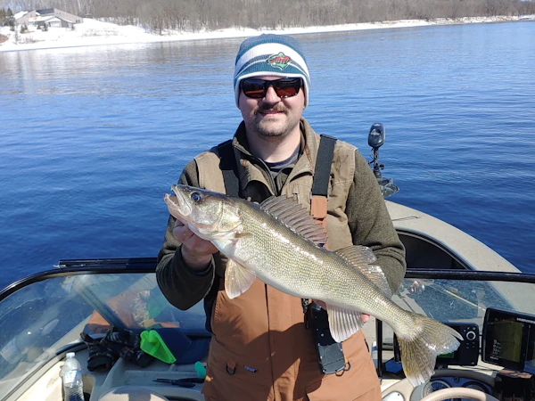 WalleyeTechniqueVertical Jigging Mid Depth (10-19')SeasonSpring (Pre-Spawn)StructureRiver ChannelsFishing on the rainy river was a little slow with the cold water temps, but we were able to put some nice walleyes in the boat along with a bonus sturgeon. We focused on the edge of the channel breaks pitching our jigs into shallow water and popping it off the edge. We would do a slow controlled drift with the trolling motor. Plastics performed better than live bait. Pink and orange were the best colors for us. 1/2 oz or 3/8 oz jigs worked best to keep the bait in the strike zone.