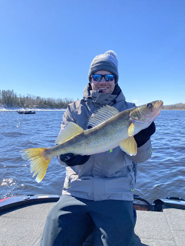 WalleyeTechniqueVertical Jigging Mid Depth (10-19')SeasonSpring (Pre-Spawn)StructureRiver ChannelsFishing the Rainy River. Ice had skimmed over the river and it took a while to clear up but we were able to hop around and try a few different styles of fishing. With the cold water and falling water some of the fish we caught were in deeper pockets from 12-18ft adjacent to shallow flats on the edge of current seams, We spot locked and vertically jigged 1/2oz jigs with plastics, rainbows, small suckers and frozen shiners along with hair jigs. We fished shallower flats upstream from deeper holes with the 1/4 to 3/8oz jigs again and hair jigs in the 8-12ft range. Using spotlock vertical jigging, pitching jigs to the side or slightly cornering back downstream let the jig roll and hop in the current until it straightens out behind the boat downstream. Most bites would happen right away as our lines straightened out or on the fall jigging. 1/2oz also worked for more aggressive snapping. Dragging jigs upstream at 0.3 mph on shallower flats in 8-12ft worked well too. 1/4-1/2oz jigs pitched back behind the boat and jigged just enough to touch bottom when dropping the rod tip back a couple feet was key. Jigs with plastics like the rage simmer and keitech fat swing or BfishN moxie or pulseR worked the best. Pulling shallow diving minnow crank baits upstream at 1mph to 1.5mph on 3 way rigs with 2 or 3oz weights 12-16" down on lighter mono with 5-6ft leaders of 12lb flourocarbon back to the lure worked well for bigger fish