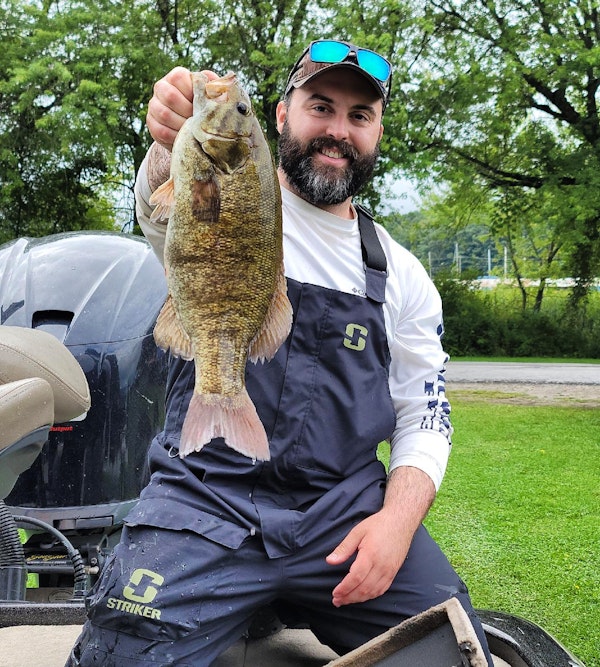 Smallmouth BassTechniqueDrop ShotSeasonSummerStructureLedgesFished the Bassmaster Open tournament here on the St. Lawrence, but ended up spending all of my time on the lake. Found huge schools of smallmouth around Duck Island in 30-60 fow. Some schools were tight to the bottom, and I caught them drop shotting a Berkley Maxscent Flat Worm. There's current in the lake even when it's flat calm, so a 3/4 oz dropshot weight was key to getting the bait down as directly below the boat as possible. Other schools would be suspended 20-30 feet off the bottom, so I would target them with Livescope and throw a 3/4 oz white Z-Man Jackhammer at them.