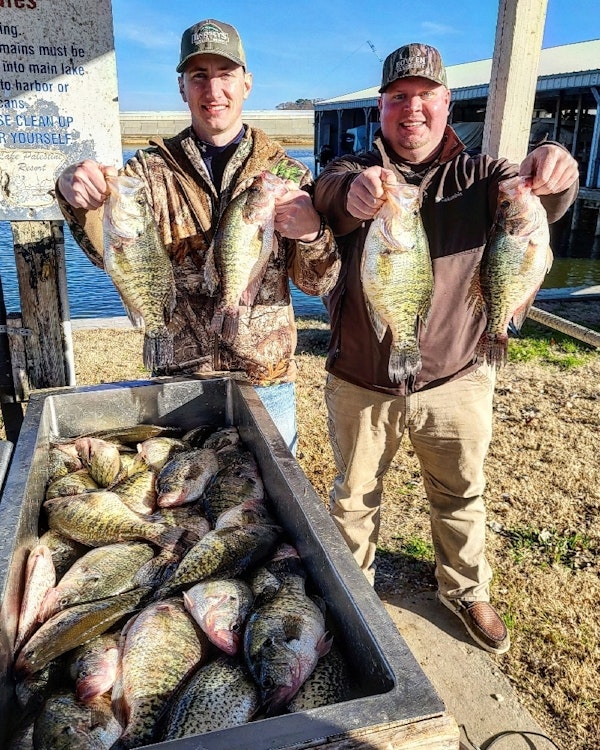 CrappieTechniqueVertical Jigging Deep (20'+)SeasonWinterStructureStumpsMost crappie are near or in the river channel in 25-35fow suspended on timber 16-24ft down.