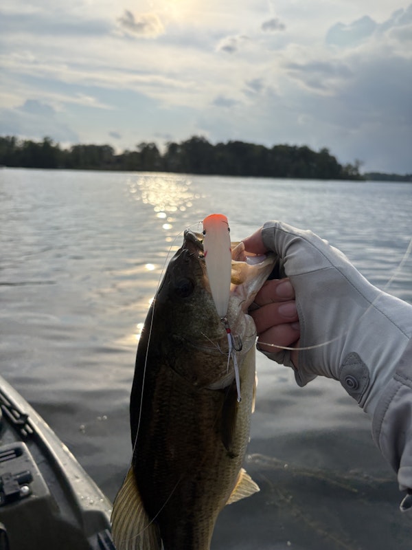 Largemouth BassTechniqueHard Topwater (Popping)SeasonSummerStructureSubmerged VegetationFishing the island flats with tall grass. Slow cadence seemed to work the best.