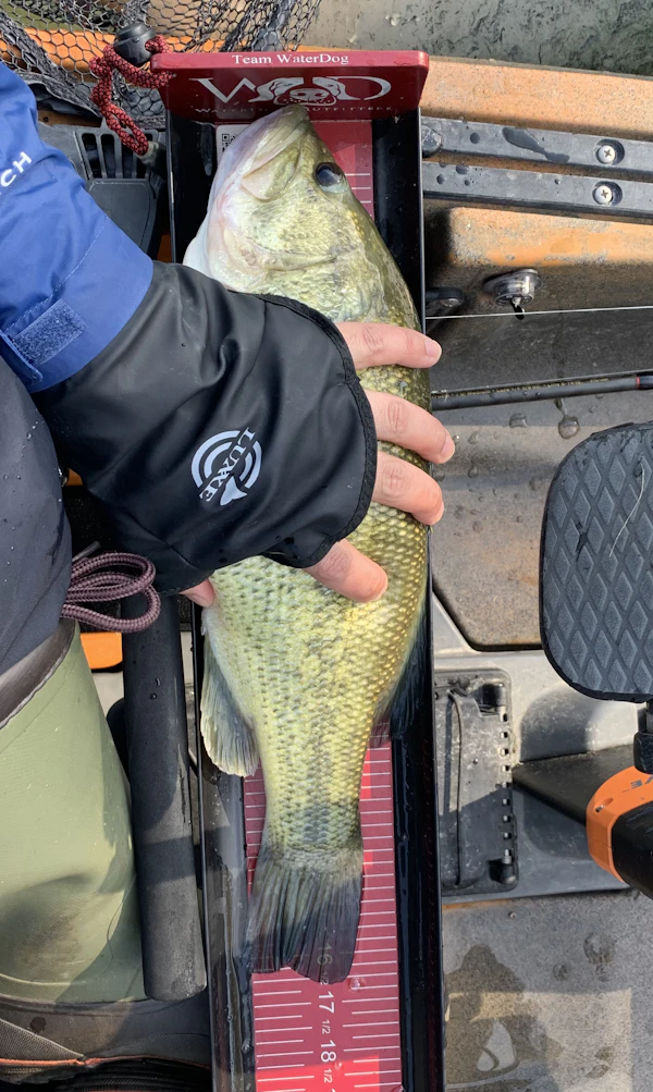 Largemouth BassTechniqueSpinnerbaitsSeasonSpring (Pre-Spawn)StructureReedsAir temp 50 Wind 17mph Water temp 45
