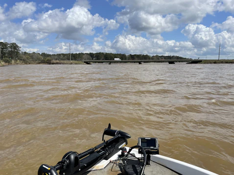 Fishing BLat’s Straight Up Fishing Championship - cold night on Saturday pushed many bedding females deeper until the middle of the day and a higher sun. Water clarity was approximately chocolate milk - dark bait water through and through. My best bait was the ZMan Gremlin (black and blue), pitched up to natural cover. Dock fish were all but non-existent in the wind, but wind protected forested shore lines with downed trees were the bite.