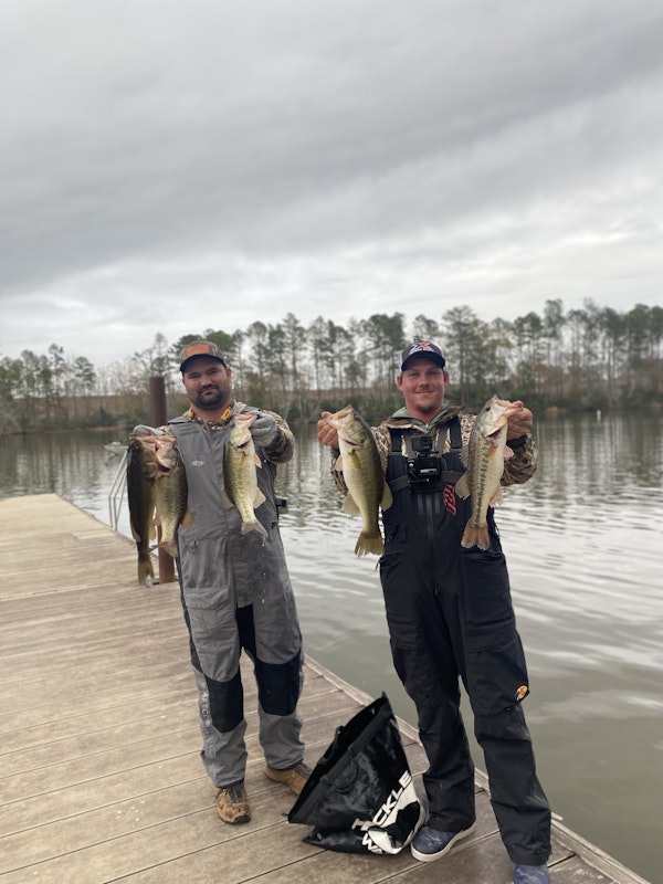 Largemouth BassTechniqueTexas Rigs (Worming)SeasonWinterStructureDocksFish were holding to docks on the lower end of the lake near the damn. It was a cloudy day and the fish were spread out. We got bit on the back side and front side of docks. The darker colors seemed to work best. We caught most of them Texas rigged but we caught a few on a drop shot as well.