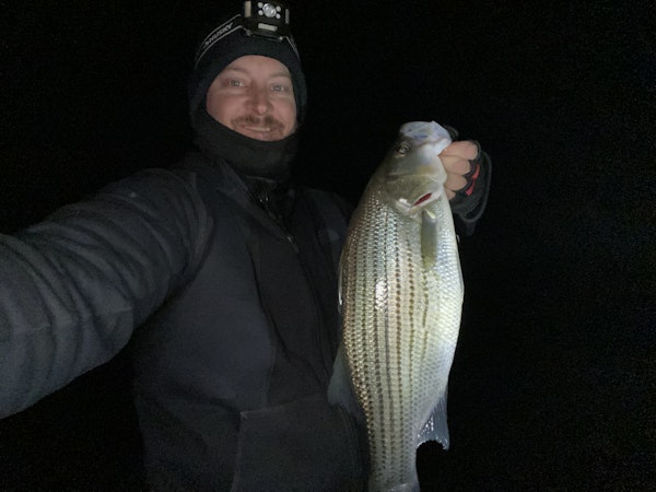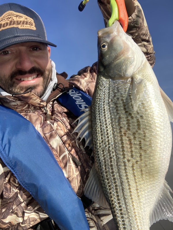 Striped BassTechniqueUmbrella RigsSeasonWinterStructureBouldersI went all the way to the Oconee Dam to look for cleaner water, but the entire lake was really muddied up from the rain the week before. The most consistent water temp was 48 degrees, and less than 2 ft of visibility. The hybrid were on top of humps or just on the side of boulders and would eat the umbrella rig if it got any closer than 3 feet. Putting it right in front of them was the key with the water being so dirty and having no wind or current.