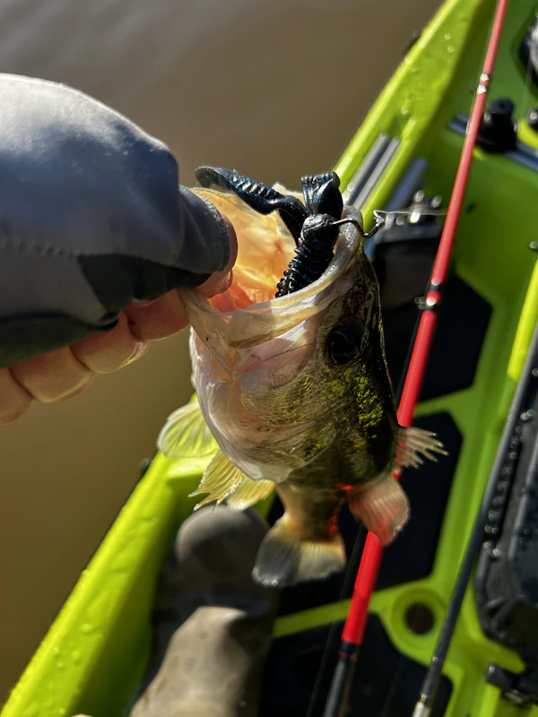 Largemouth BassTechniqueTexas Rigs (Pitch/Flip)SeasonSpring (Spawn)StructureLaydownsFishing BLat’s Straight Up Fishing Championship - cold night on Saturday pushed many bedding females deeper until the middle of the day and a higher sun. Water clarity was approximately chocolate milk - dark bait water through and through. My best bait was the ZMan Gremlin (black and blue), pitched up to natural cover. Dock fish were all but non-existent in the wind, but wind protected forested shore lines with downed trees were the bite.
