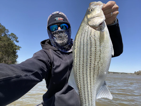 Largemouth BassTechniqueSoft Body Swimbaits (Small/Medium)SeasonSpring (Post-Spawn)StructureLaydownsFishing was tough and the cold temps and heavy weekend rain didn’t help. Water temp has dropped to the low 60’s. North end below the Oconee dam had the clearest water with heavy stain south of shoulder bone and throughout the rest of the lake. Burning a skinny dipper and a jackhammer fished around shallow laydowns produced some quality bites.