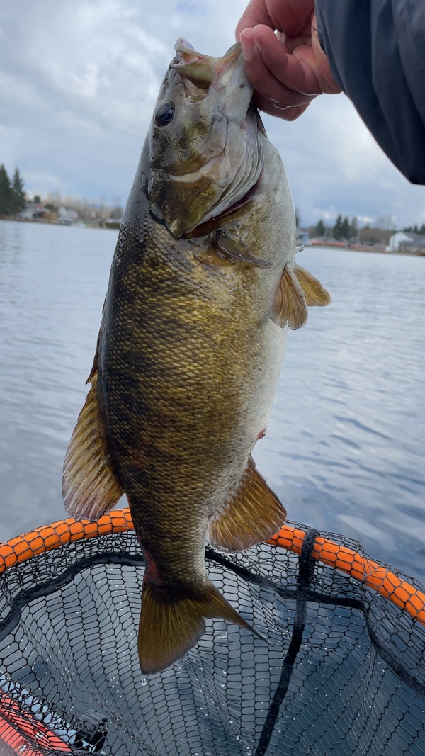 Smallmouth BassTechniqueSoft Body Swimbaits (Small/Medium)SeasonSpring (Spawn)StructureRock PileCaught on the pendulum swing - cast far and let your bait fall-swing on tight line. Love this jig head. Would suggest practicing rigging or pre-rigging the night before. I have reused plastic paddle tails using Mend-It. Loved the fight on this guy. 1 oz from tying my PB smallmouth. 4lb 11oz