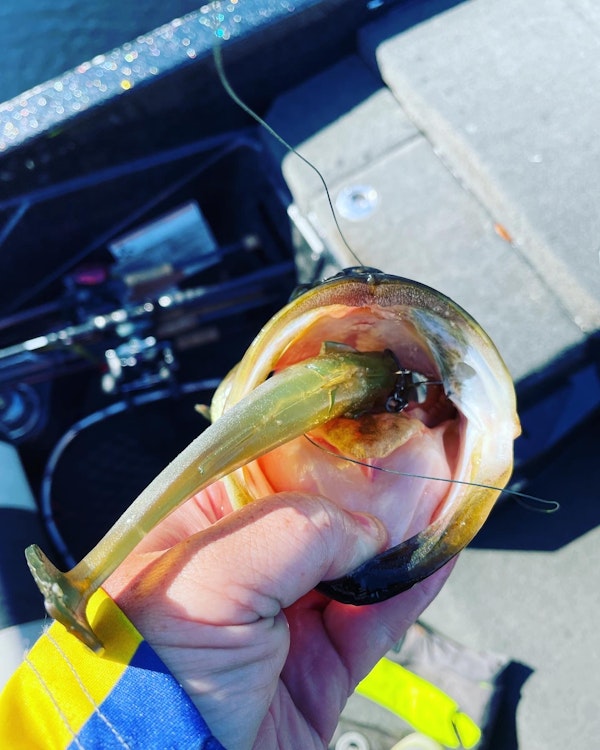 Largemouth BassTechniqueSwim JigsSeasonSpring (Spawn)StructureSubmerged VegetationWinding a swim jig through vegetation was the best way to cover water and find any active fish.