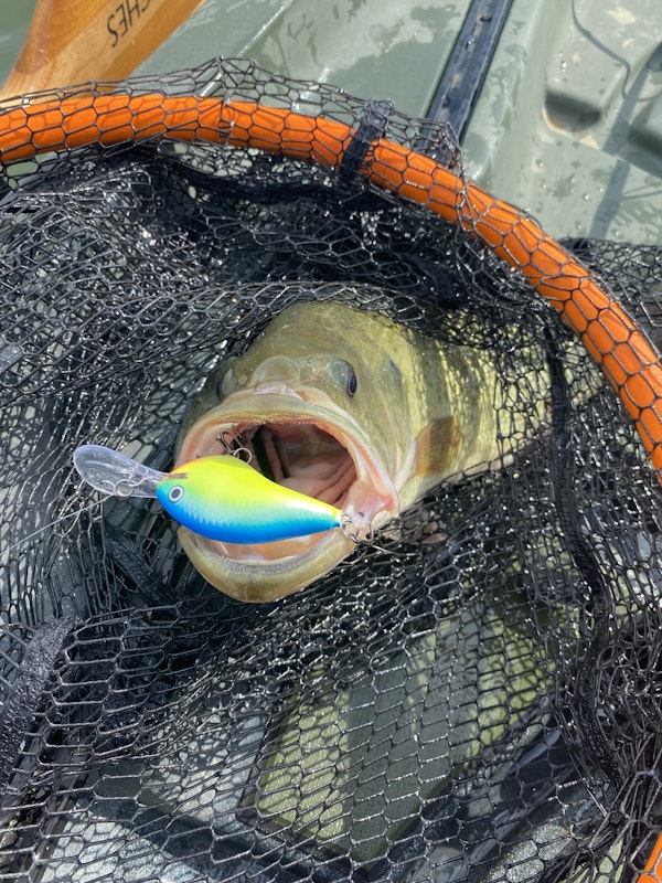Largemouth BassTechniqueHard Topwater (Walking)SeasonFallStructureSubmerged VegetationWas able to get out in the kayak for about five hours this morning. Windy and cloudy. Ended up catching a couple fish on a DT 10 on the deep weed line, but found a very productive pattern walking a bone colored Super Spook. Ended up catching several fish on that, including a few really good ones.