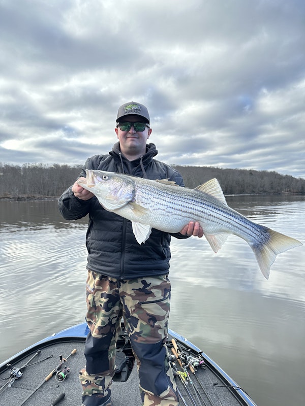 Striped BassTechniqueUmbrella RigsSeasonSpring (Pre-Spawn)StructureBrush PilesFound some stripers cruising flats near some brush piles.