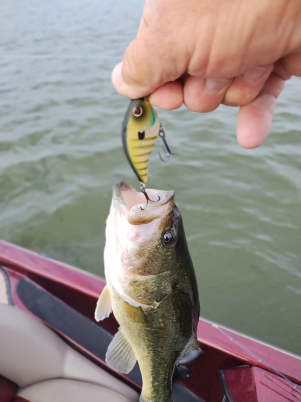 Largemouth BassTechniqueShallow Diving Crankbaits (0-6')SeasonFallStructureRock PileRetrieved over the top of the rock pile varrying the speed to induce strikes.