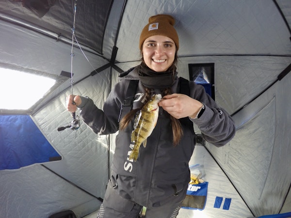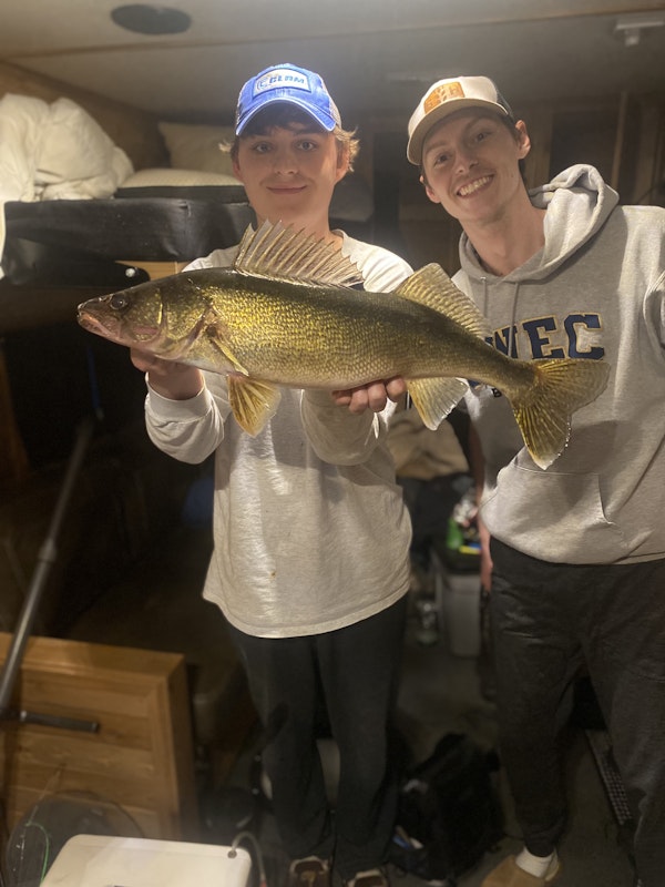 WalleyeTechniqueVertical Jigging Mid Depth (10-19')SeasonSpring (Post-Spawn)StructureHumpsGreen/yellow jig with a shiner