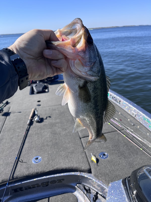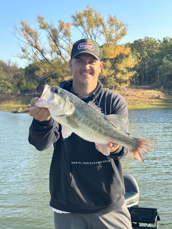Largemouth BassTechniqueTexas Rigs (Pitch/Flip)SeasonFallStructureDocksI ran a guide trip out on the lake the other day with a client who was wanting to dial in his sidescan and livescope. We spent a good chunk of the day doing that, and then had a little bit to fish afterwards. We targeted the floating tires at the mouth of the marinas, utilizing his now dialed in livescope to see fish swimming around in the openings of the tires or in the cables beside or underneath them. We would spot the fish on the livescope, and then flip the texas rig into the tires where they were and pull them out. We caught a few decent fish doing this, and then decided to go shallow and fish in the back halves of some of the smaller creeks in the area to see if any fish have started to push bait back into them for the fall shad migration. This technique produced a few smaller fish on a squarebill and a jackhammer, and then the biggest fish of the day (pictured) on a Texas rig caught by my client. All in all it was a slower day with only 8 or so bites, but we found a few of the right ones in the time we fished. The water temperature ranged from 65-69 degrees, and the water visibility ranged from about 6 inches of visibility to about 12 inches of visibility. There was a strong south wind at about 20+ mph, and clouds covered the sky for most of the day, except for a brief period in the morning where the sun was out and the wind was slightly calmer. Lewisville can be a tough lake to fish this time of year as the fish spread out with some fish staying on the main lake and suspending over deeper cover or underneath boat slips and tires, while other fish move back into the creeks in shallow water chasing bait, so you have to keep an open mind and be versatile to be successful this time of year. The fish we were catching on the tires were between 5-10 feet deep, while the fish we were catching in the creeks were in less than 3 feet of water along a rock bank. Thank you all for reading my reports, and tight lines!
