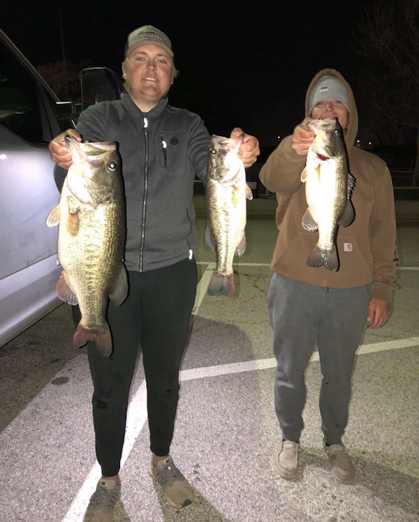 Largemouth BassTechniqueStructure JigsSeasonSpring (Pre-Spawn)StructureLaydownsI fished a Friday Night working man's tournament with a buddy on the lake on 04/08/22. We spent the evening targeting laydowns, rock, brush, and dock walkways on 45 degree angled banks in the many marinas of the lake, flipping and skipping a Strike King skipping jig into hard to reach places. We were able to come away with the victory in the tournament with a 3 fish limit for 13.63 pounds, and I was able to win big bass with an 8.08 pound female (all pictured below). The water temperature on the lake that night ranged from 58 to 62 degrees, with outside temperatures in the mid 50's and a very strong northwest wind. The water clarity on the lake ranged from a few inches of visibility up to about a foot and a half of visibility. The fish were all prespawn but are very close to spawning, so be on the lookout for beds on your next trip out to the lake!