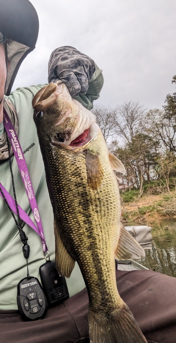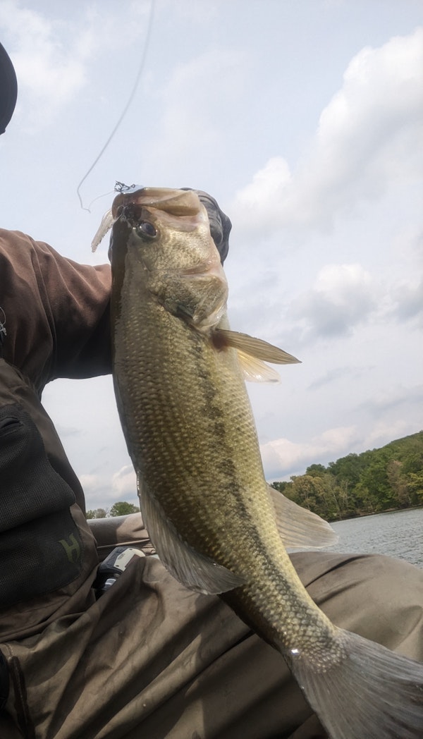 Largemouth BassTechniqueTexas Rigs (Worming)SeasonSpring (Pre-Spawn)StructureSubmerged VegetationWater temperatures have been dropping recently and fish are not ready for the bed yet. Hard to find fish since they haven't positioned anywhere in particular. Found this one. Shallow on a stick and it ate a worm.