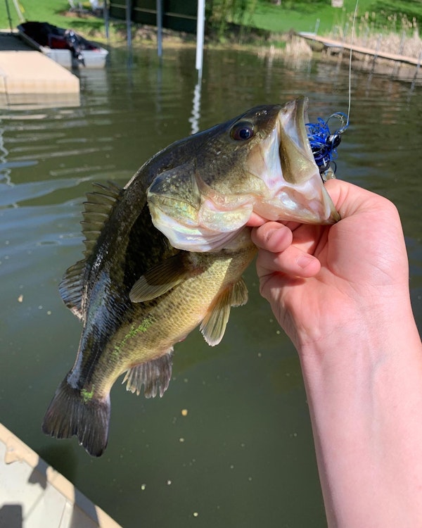 Largemouth BassTechniqueGrass JigsSeasonSummerStructureDocksSkipping docks with a stealth fieder jig. Had to get way under the docks to get bit.