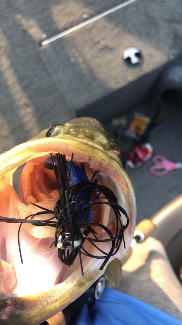 Largemouth BassTechniqueFinesse JigsSeasonSummerStructureDocksSkipping a 3/8 queen tackle tungsten jig on shallow main lake docks.