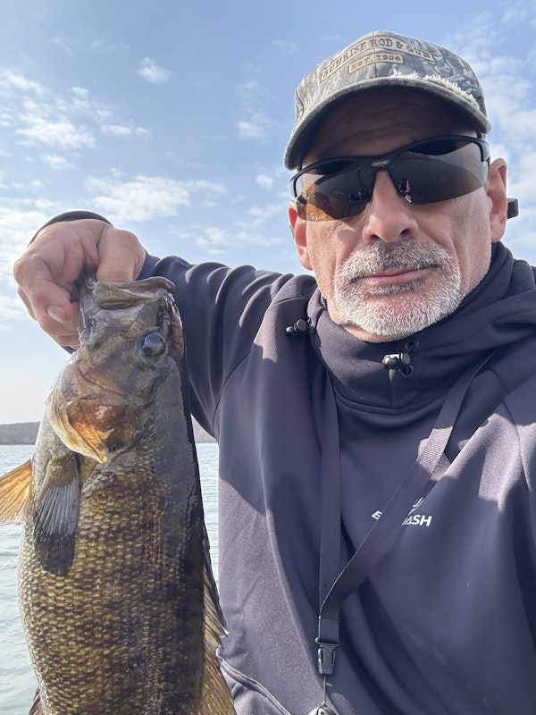 Smallmouth BassTechniqueDeep Diving Crankbaits (13'+)SeasonSpring (Pre-Spawn)StructureOpen Water/BasinSpent the day trying to find staging bass. Picked off a couple around some isolated stumps with a jig then at the end of the day while making my way back to the launch, I was power fishing a deep diving crank around the outside sections of standing timber when I picked off this nice 4lb smallie. Can’t wait for more to make their way up. My favorite time of year