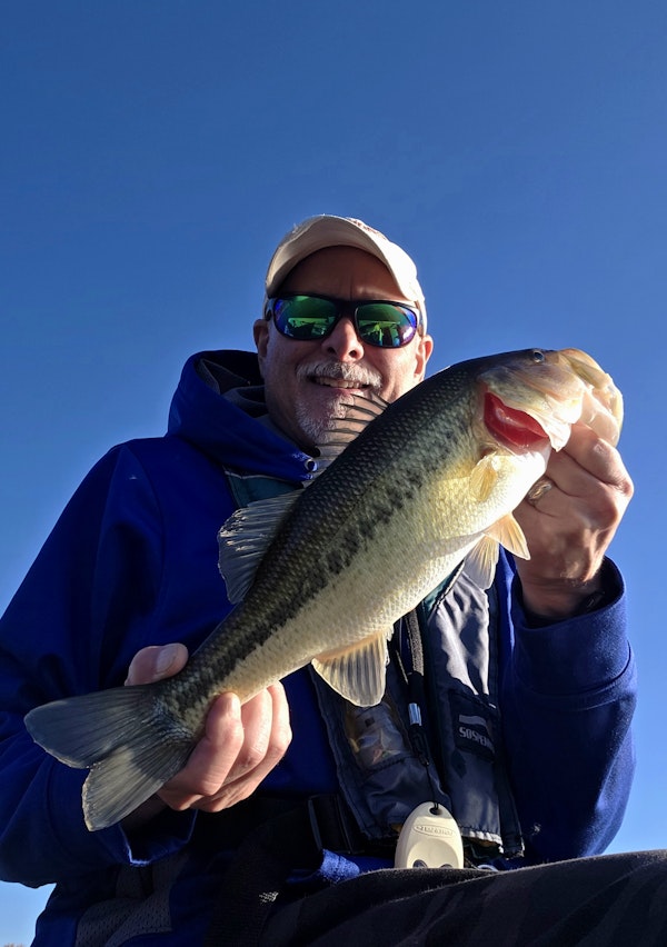 Largemouth BassTechniqueCarolina RigsSeasonFallStructureSubmerged VegetationTough bite but a finesse Carolina Rig worked slowly through the remaining cabbage grass produced bites