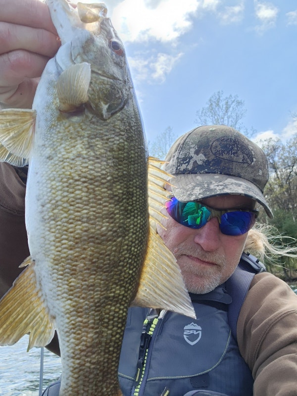 Smallmouth BassTechniqueHard JerkbaitsSeasonSpring (Spawn)StructurePointsSlow bite today. Largest fish was 14 1/2" Fish came on a Sammy's Baits vision 110 style in rainbow trout pattern.
