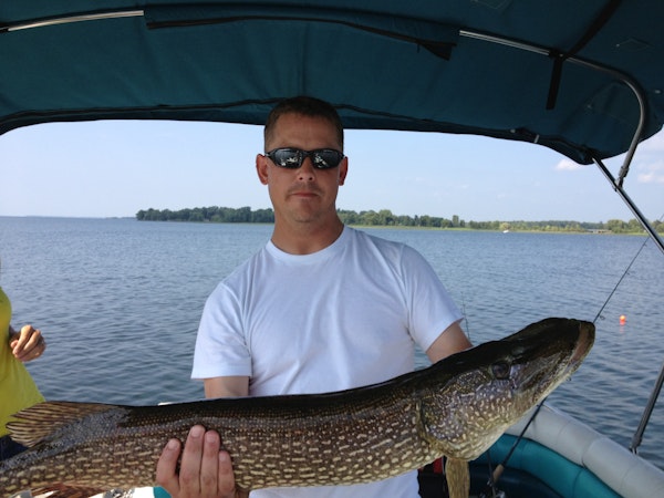 Northern PikeTechniqueSpinnerbaitsSeasonSummerStructureSubmerged VegetationTrolling big spinner baits can make for a fun summer outing near Isle. Lucky color was black and red.